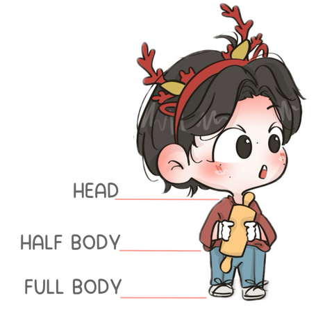 ** ไม่รับออกแบบ (รับวาดเฉพาะตัวละครจิบิและองค์ประกอบเพิ่มเติมเล็กน้อยเท่านั้น เช่น พร็อพ สัตว์หรือสิ่งของที่เกี่ยวข้องกับตัวละครที่วาด) คุณลูกค้าจะต้องบรีฟรายละเอียดที่ต้องการให้ชัดเจน **
